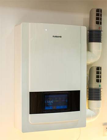 壁掛式新風(fēng)系統(tǒng)則是安裝在每個房間的窗戶下方,將室外的空氣引入室內(nèi),然后通過熱交換器平衡溫差,將室內(nèi)以二氧化碳為主的污濁空氣經(jīng)熱回收后直接排出,為室內(nèi)輸送自然持續(xù)的新鮮空氣。